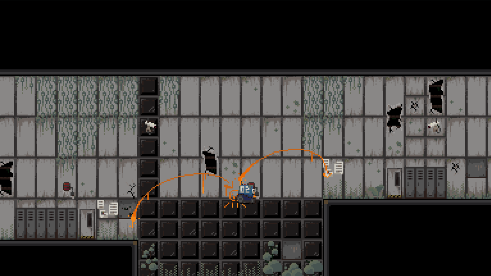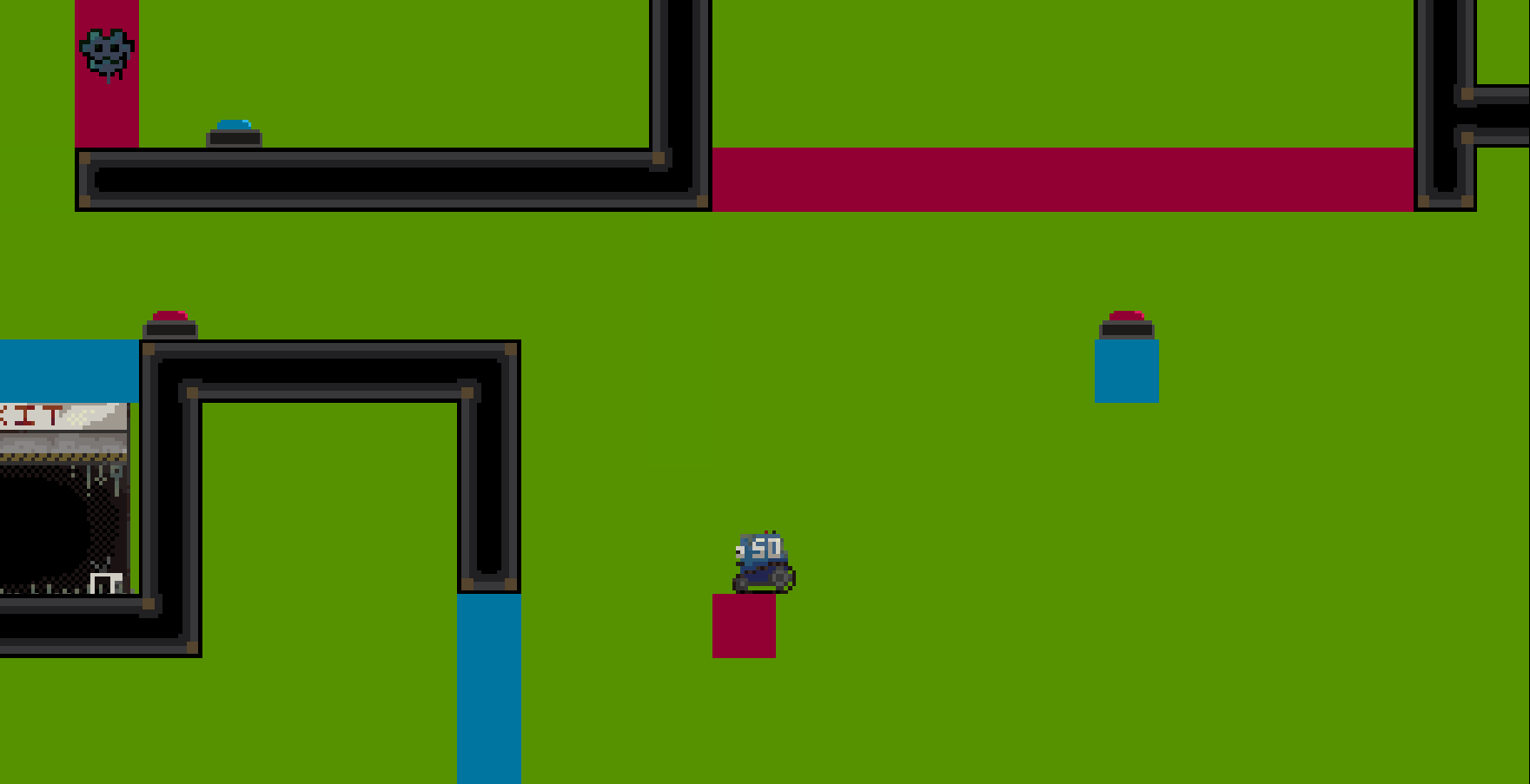 A puzzle platformer where the player must find the path forward through differently coloured blockades. The background acts as a colour mask, disabling level elements that match its current colour.